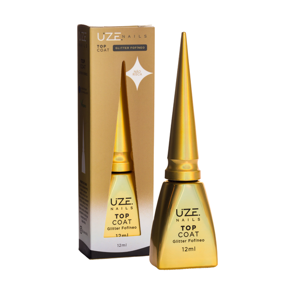 Finalizador transparente com brilhos e flakes dourados, brilho espelhado tipo diamante e alta resistência a riscos. Fórmula fina, durável e que não amarela, mesmo com contato com acetona ou maquiagem.